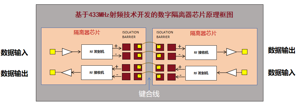 按实现原理,数字隔离芯片可分为磁耦隔离和容耦隔离两个方向,而今年会微的数字隔离芯片是基于433MHz射频技术开发,通过电容耦合技术利用电容内部的电场变化来实现数据信号的传输,其性能更加优秀稳定。