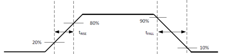 其中,输出上升时间(tRISE)和输出下降时间(tFALL)定义为输出电压从低电平阈值上升到高电平阈值(从高电平阈值下降到低电平阈值)所需的时间;CMT8602X输出上升时间(tRISE)的典型值为16ns,输出下降时间(tFALL)的典型值为12ns,可最大化地减少开关损耗。