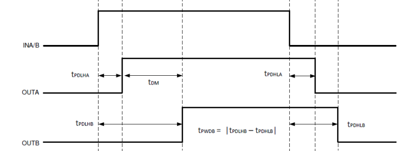 传播延迟(tPDHL、tPDLH)定义为输入沿到达输出所需的时间,并取决于器件的输出电流和输出负载;传播延迟通常伴随脉冲宽度失真(tPWD),其为上升沿时延和下降沿时延之间的差值;CMT8602X下降沿传播延迟(tPDHL)的典型值为40ns,上升沿传播延迟(tPDLH)的典型值为35ns,可极大地提升控制信号与功率器件开关动作的同步性,尤其在高频PWM控制或多器件并联场景中,可减少开关时序偏差导致的电流不均现象。
